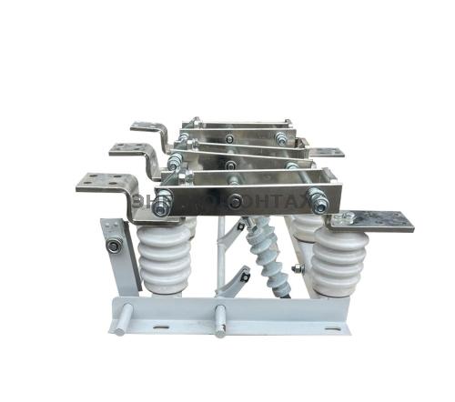 При вращении вала разъединителя РВЗ-10/1600 II УХЛ2 с помощью привода происходит одновременное включение или отключение трех контактных ножей.